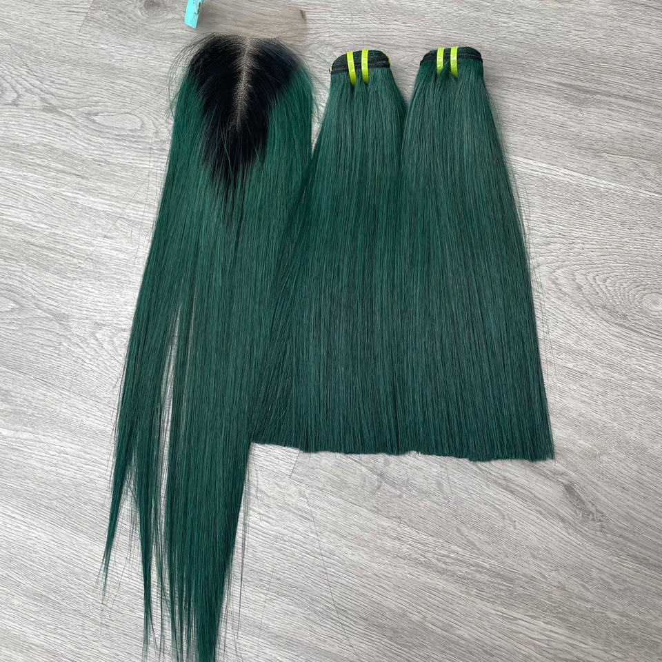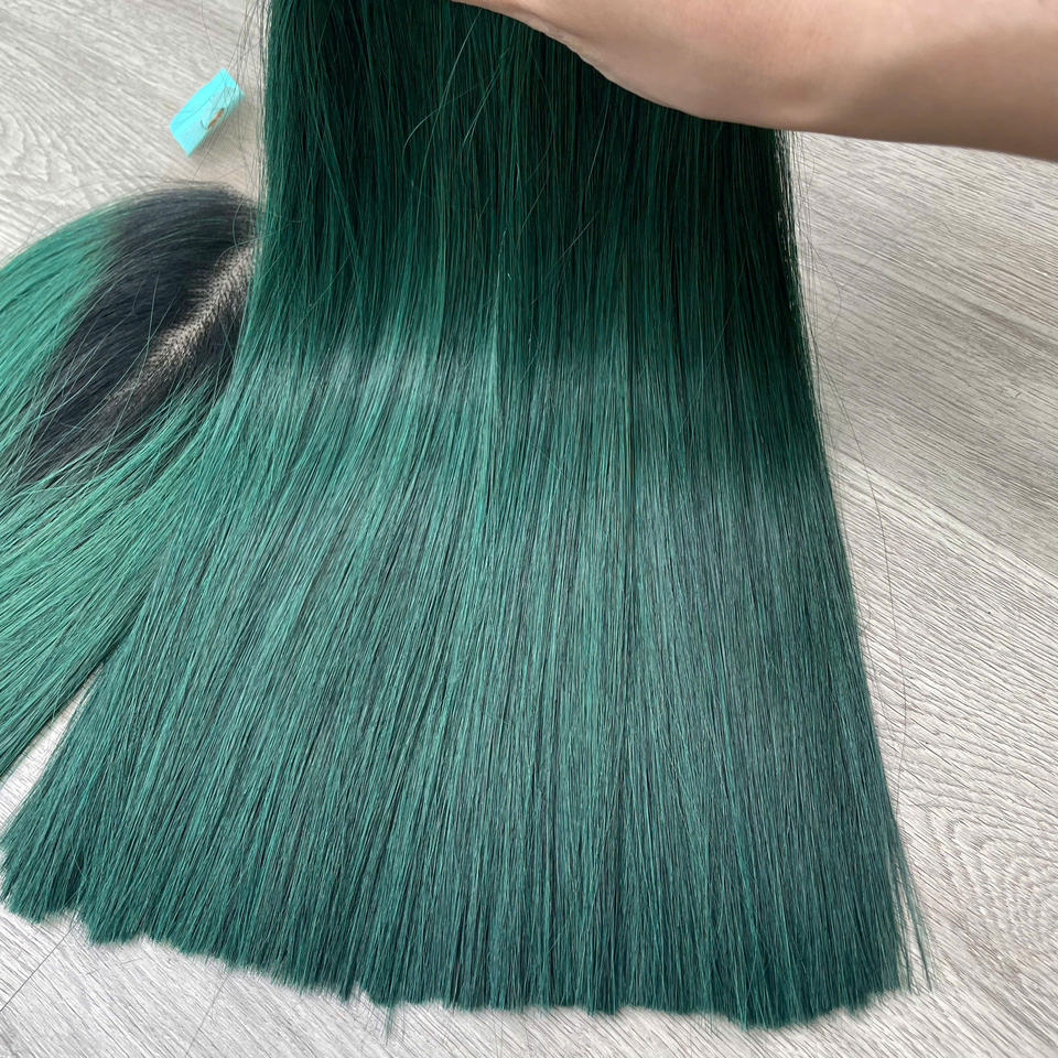 ผมแท้สีเขียวเข้มแบบตรงธรรมชาติ คุณภาพสูง ขายส่ง ผมมนุษย์แท้ 100%