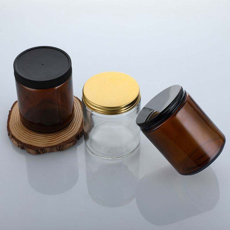 ขวดแก้วโบโรซิลิเกตทรงกระบอกสำหรับครีมบำรุงผิวและน้ำมันหอมระเหย ขนาด 1 ออนซ์-8 ออนซ์ สีใส สีเหลืองอำพัน สีตามสั่ง ฝาอะลูมิเนียม/พลาสติก