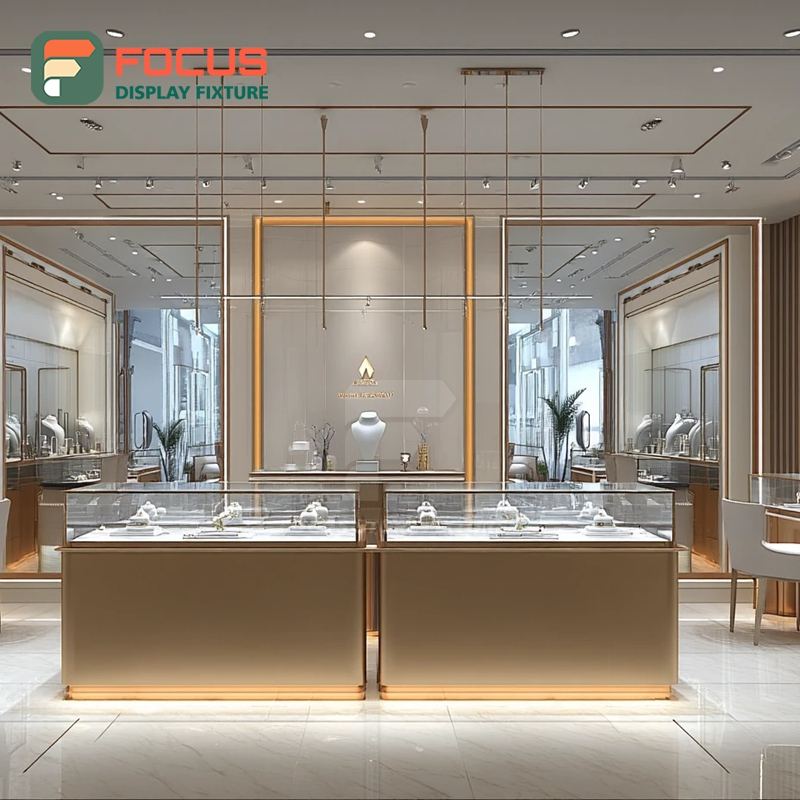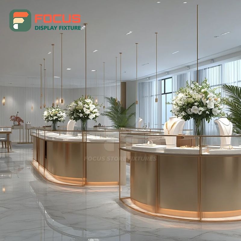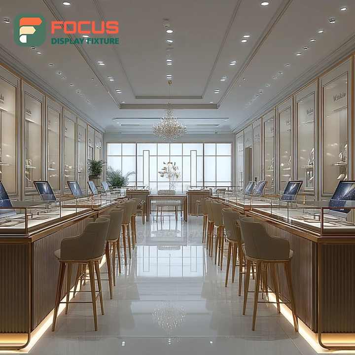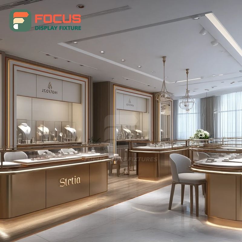 ระบบจัดแสดงเครื่องประดับบูติกสุดหรู โครงโลหะ เคาน์เตอร์โชว์สินค้าสำหรับร้านค้าแบรนด์ดัง