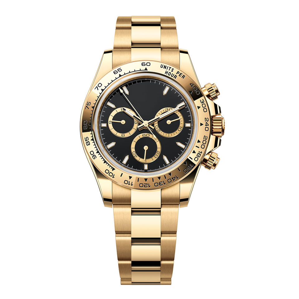 นาฬิกาโครโนกราฟกลไกอัตโนมัติแบรนด์หรูนาฬิกา4130โลโก้ที่กำหนดเองสายเหล็กเคลื่อนไหวสีเหลืองทอง40มม.