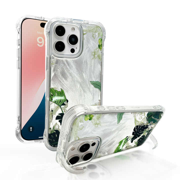 เคสโทรศัพท์ป้องกัน PC TPU กันกระแทกที่ทนทานพร้อมลายดอกไม้ศิลปะสำหรับ iPhone 15 14 13 12 11 Pro M