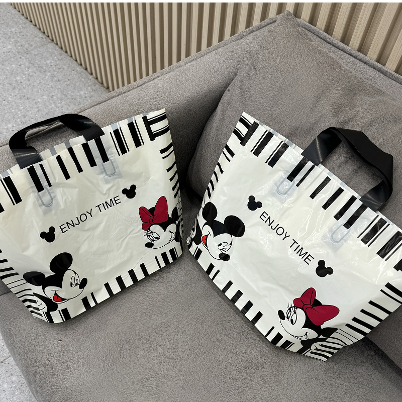 ถุงช้อปปิ้งพลาสติก PE แบบใช้ซ้ำได้แบรนด์หรูมีการออกแบบฤดูใบไม้ผลิและการพิมพ์ลายกราเวียร์สำหรับร้านขายเสื้อผ้า