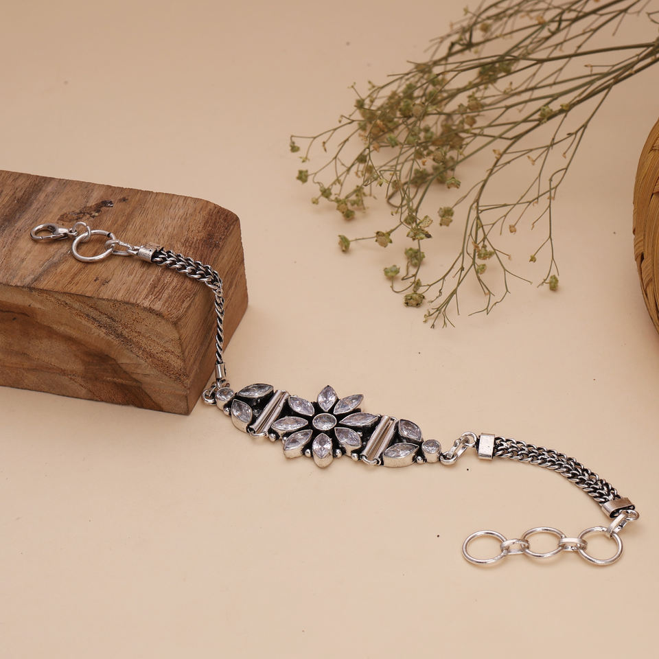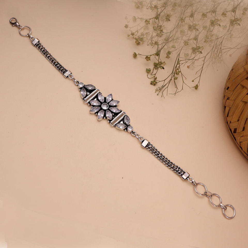 เครื่องประดับหรูหราประดับด้วยลูกปัดทองเหลืองลายดอกไม้ ชุบเงินโบราณ ประดับคริสตัลเพทาย ดีไซน์แบบชาติพันธุ์ สำหรับงานปาร์ตี้ เหมาะสำหรับผู้หญิง