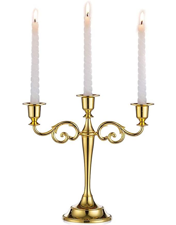 เชิงเทียนโลหะ3แขน,เชิงเทียนทองเหลืองหรูหราสำหรับตกแต่งบ้านโรงแรมงานแต่งงาน