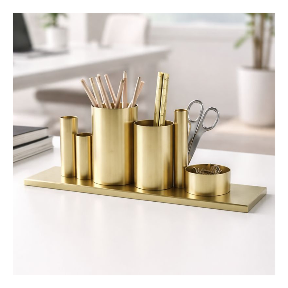 ชุดอุปกรณ์จัดระเบียบโต๊ะทำงานทองเหลืองสุดหรู ถาดโลหะทันสมัยสำหรับบ้านและสำนักงาน ผลิตด้วยมือ ออกแบบตามสั่ง ขายส่งจำนวนมาก