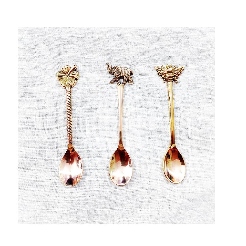 ชุดช้อนกาแฟขนนกทองเหลืองสุดหรู4ชิ้นสำหรับบ้านและโรงแรมชุดช้อนกาแฟแบบแบนพร้อมน้ำยาขัดเงาสำหรับห้องครัว