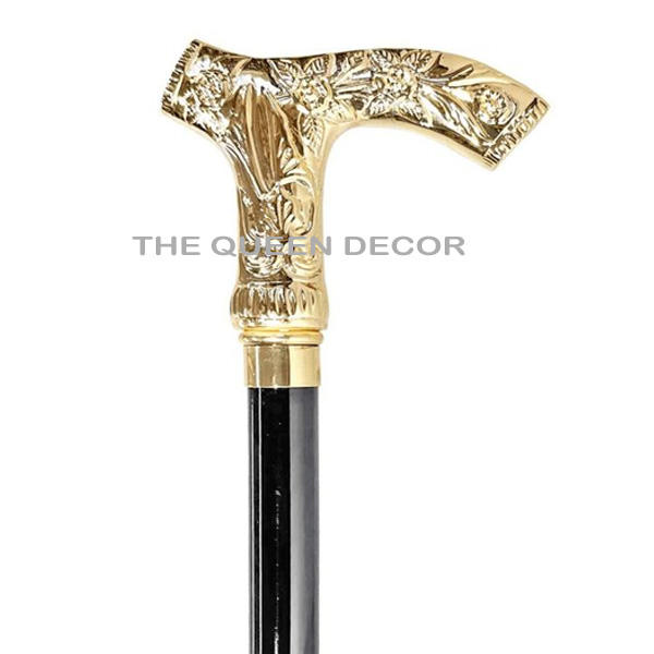 แท่งไม้ทองเหลืองแบบหรูหราไม้เท้าผิวนูนทำจากพื้นผิวสีทองไม้เดินแบบสุภาพบุรุษ