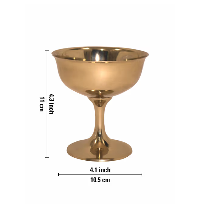 ชามไอศกรีมทองเหลืองหรูหรา พร้อมกล่องสีน้ำเงิน และช้อนทองเหลืองสำหรับของขวัญที่ดีที่สุดสำหรับของหวาน