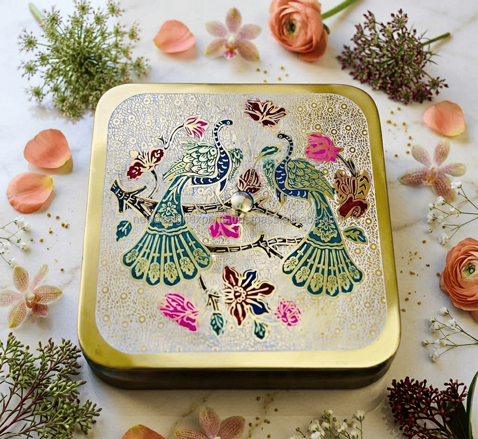 Luxury Brass Masala Box for Modern Farmhouse Decor – Square 9-Bowl Spice Organizer & Gift Set