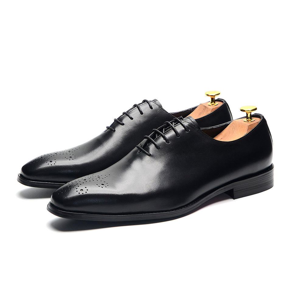 รองเท้าหนังสไตล์อังกฤษเหมาะสำหรับนักธุรกิจชุดสูทธุรกิจหนังวัวแท้