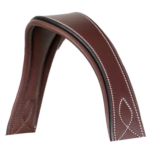 บังเหียนม้าสีน้ำตาลสุดหรูพร้อมตะเข็บตกแต่งสีขาวและท่อสีดำ | สีที่ปรับแต่งได้ | ตะปูฝึกขี่ม้า