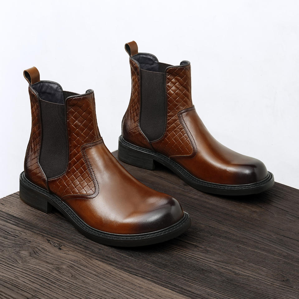 รองเท้าบูทหนังแกะสีน้ำตาลสุดหรูแบบสวมยาวเหนือเข่า พร้อมพื้นผิวกันน้ำและซับในป้องกันกลิ่น สำหรับสภาพอากาศหนาวเย็นและรองเท้าบูทแบบเป็นทางการ