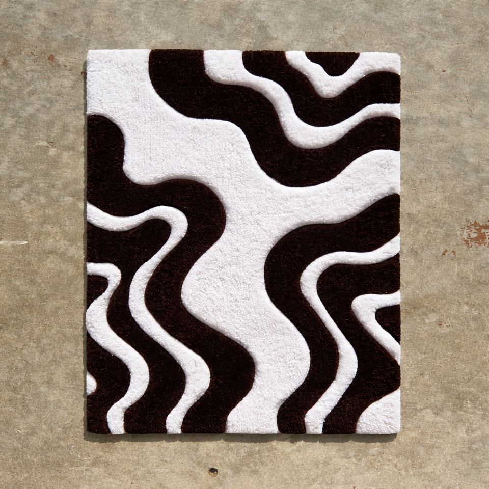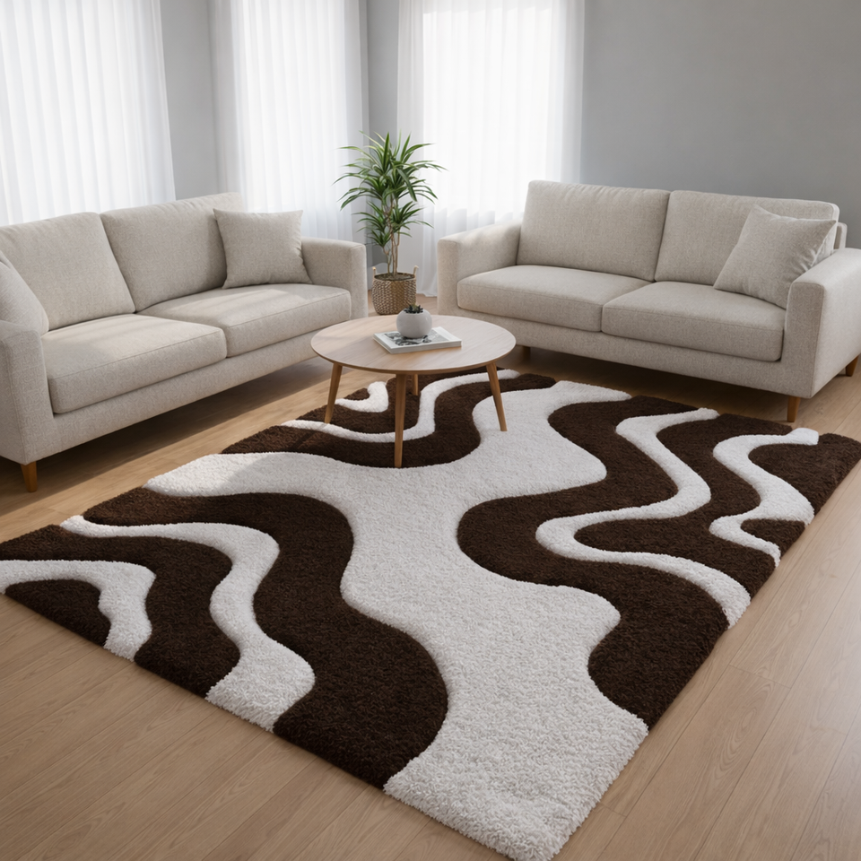 พรมปูพื้นลายนามธรรมสีน้ำตาลขาวสุดหรู ทำด้วยมือ