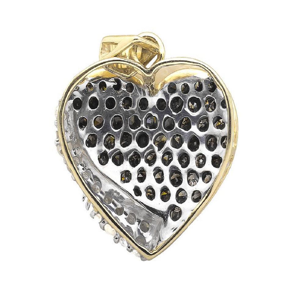จี้เพชรรูปหัวใจสีน้ำตาลและสีขาวสุดหรู925จี้หัวใจประดับเพชรทำจากเงินสเตอร์ลิงทำจากน้ำแข็งฮิปฮอปของขวัญสำหรับผู้ชายผู้หญิง