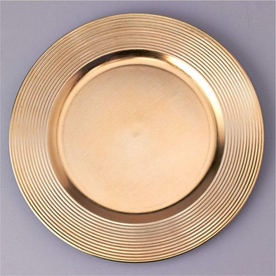 จานรองอาหารหรูหราสีทองขัดเงา สำหรับงานแต่งงาน บริการจัดเลี้ยง จัดโต๊ะอาหาร ฐานรองอาหารตกแต่งโลหะทองเหลือง