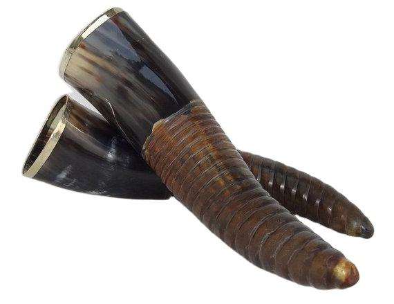แตรสำหรับดื่มควายไวกิ้งหรูหราพร้อมขาตั้งโลหะแตรรูปควายสำหรับดื่มเบียร์พร้อมปลายทองเหลือง