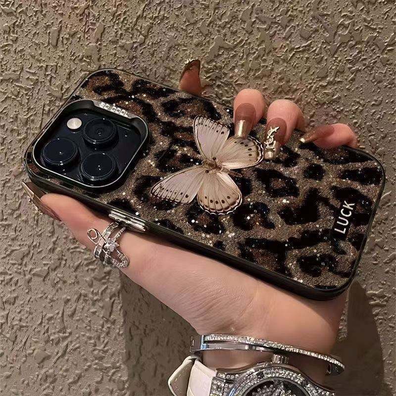 เคสโทรศัพท์ลายเสือดาวผีเสื้อสุดหรู สำหรับ iPhone 17 16 16E 15 14 13 12 11 Pro Max X XS XR 7 8 Plus SE ป้องกันแรงกระแทก แข็งแรง