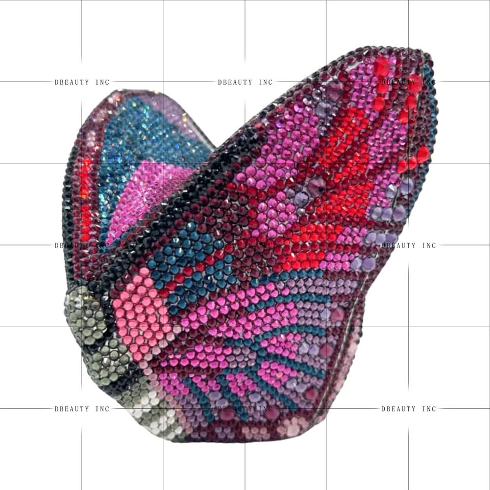 กระเป๋าคลัทช์แฟชั่นประดับเพชรรูปผีเสื้อสุดหรูสำหรับผู้หญิง งานเลี้ยงกลางคืน งานแต่งงาน งานพรอม สายโซ่ระยิบระยับ