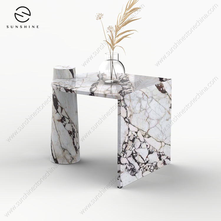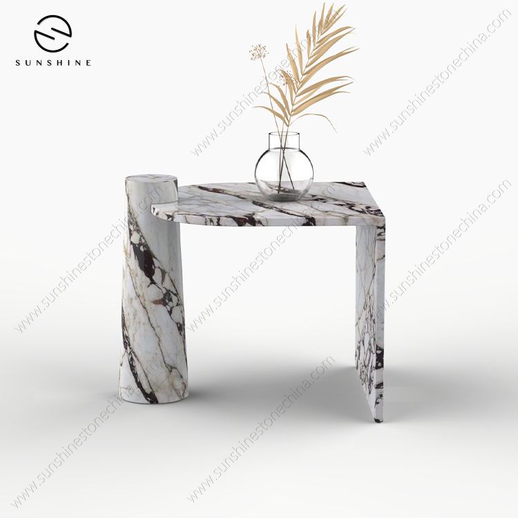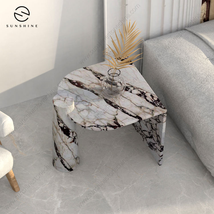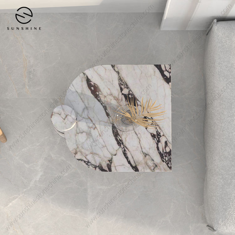 โต๊ะปลายหินอ่อน Calacatta หรูหราออกแบบวงรีที่ทันสมัยสำหรับเฟอร์นิเจอร์ห้องนอนและโรงแรมระดับไฮเอนด์