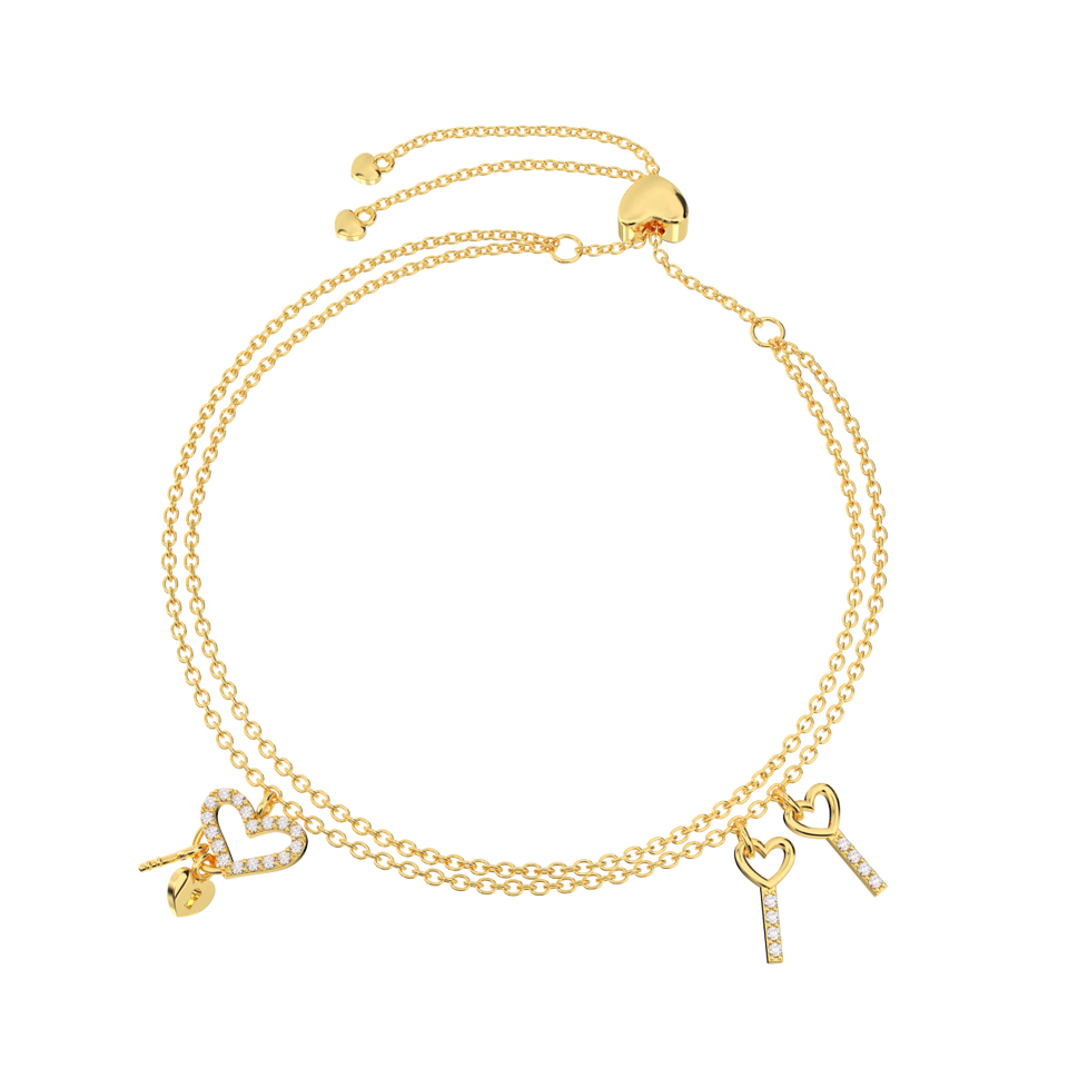 สร้อยข้อมือโซ่คู่ Calista สุดหรูพร้อมกุญแจสไตล์วินเทจและไข่มุกคุณภาพสูงชุบเงินและทอง925สำหรับเป็นของขวัญปาร์ตี้