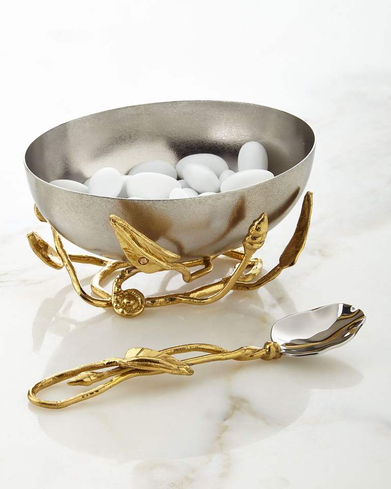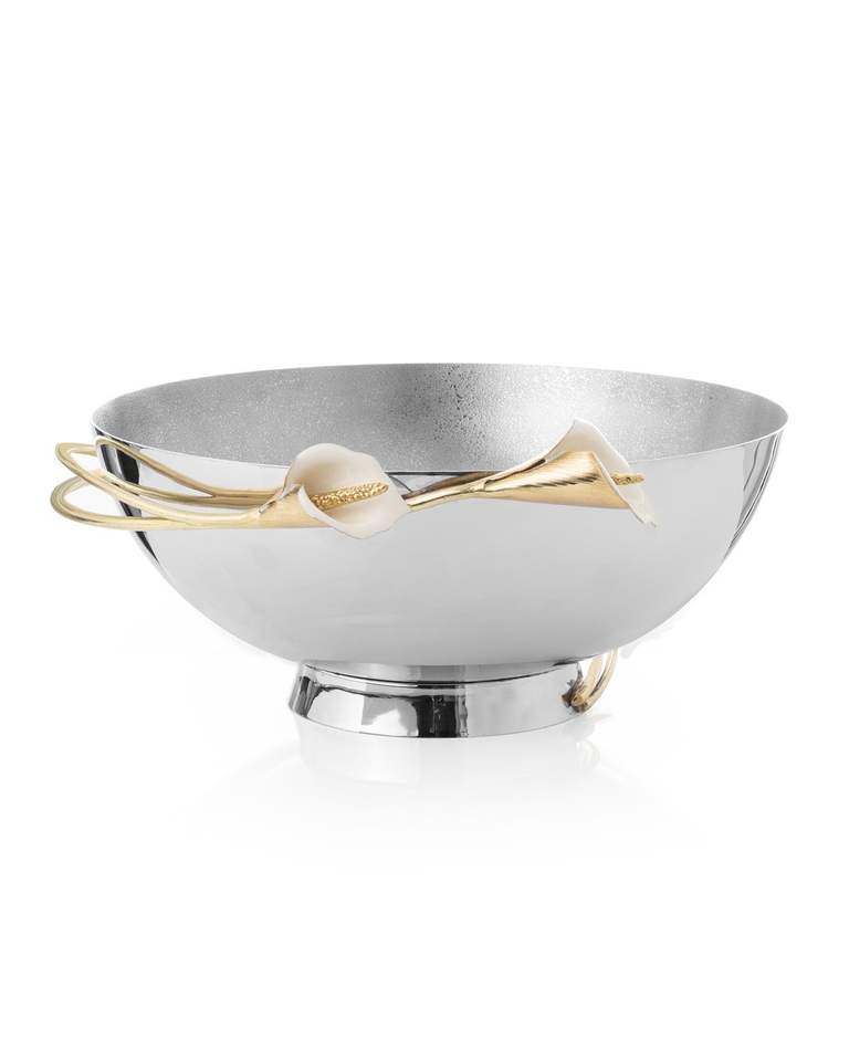 ชามเสิร์ฟสแตนเลสลายดอกคาลล่าลิลลี่สุดหรู สีทอง สำหรับใส่ผลไม้ สลัด ของตกแต่งงานแต่งงาน บ้าน และโรงแรม