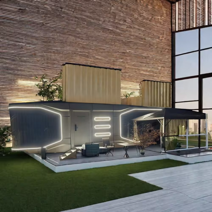 บ้านแคปซูลสุดหรู 20 ฟุต 40 ฟุตที่อยู่อาศัยสําเร็จรูปโรงแรมกันเสียงบ้านแคปซูลอวกาศสําเร็จรูปพร้อมห้องครัวและห้องน้ํา