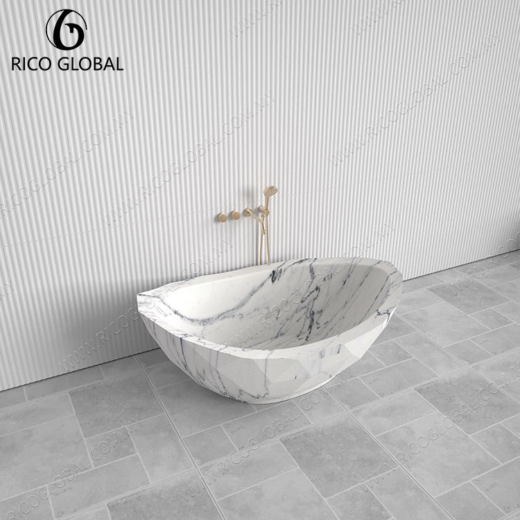 อ่างอาบน้ำหินอ่อนคาร์ราร่าสีขาวสุดหรู ดีไซน์พิเศษ แบบลอยตัว ผิวขัดเงาลายเส้นเข้ม ยี่ห้อ OEM รุ่น BT-136A