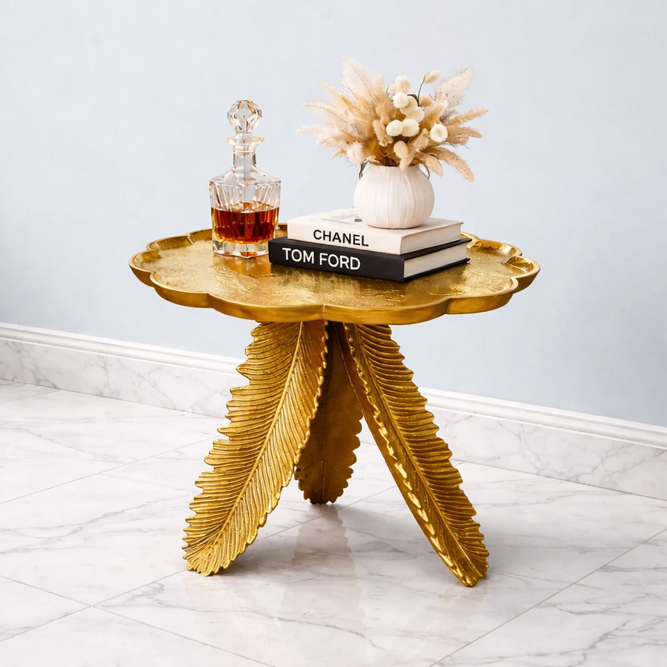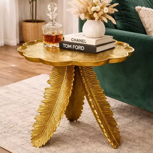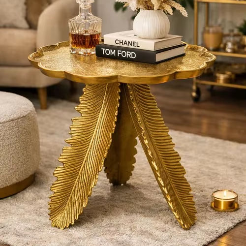 โต๊ะบาร์อะลูมิเนียมหล่อขึ้นรูปหรูหรา ฐานรูปใบไม้ ดีไซน์งานประติมากรรม ป้องกันสนิม ผิวสัมผัสระดับพรีเมียม ชิ้นงานตกแต่งสุดหรู