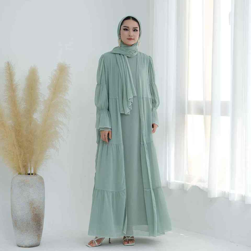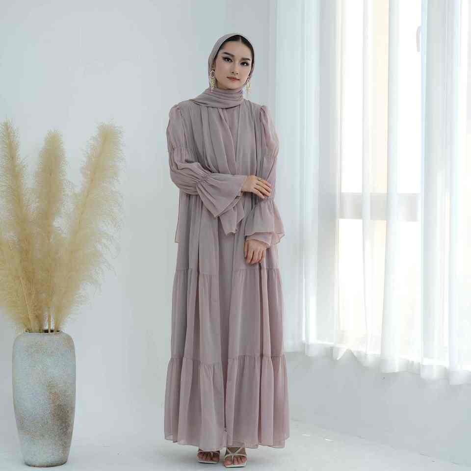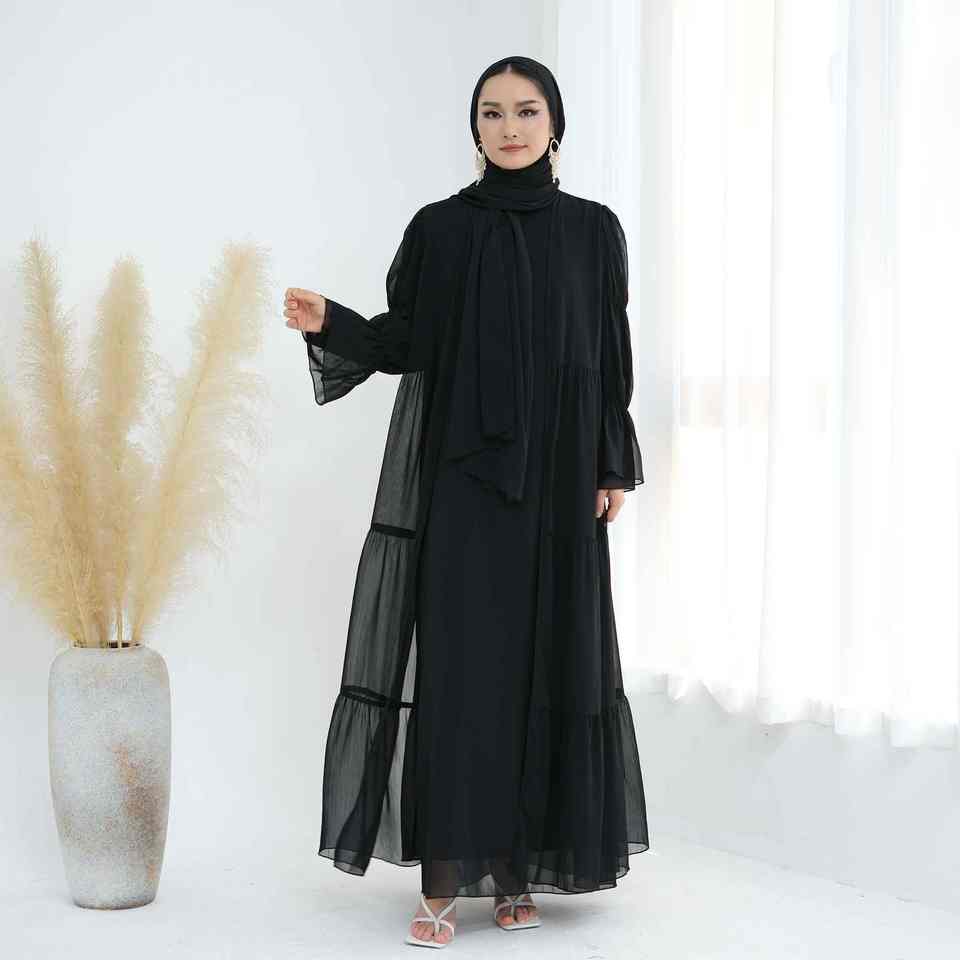 Luxury Casual Contrast Piping Modern Muslim Abaya for Women Dubai Style Modest Islamic Breathable Lightweight Floor Length Dress