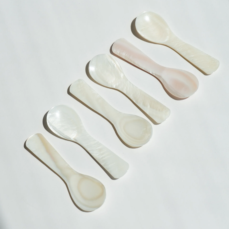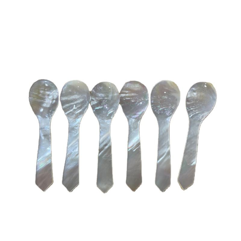 ช้อนคาเวียร์หรูหราเป็นมิตรกับสิ่งแวดล้อม ทำจากมุกแท้ งานฝีมือ ช้อนส้อมแบบสั่งทำได้ สำหรับร้านอาหารระดับไฮเอนด์ อาหารกูร์เมต์