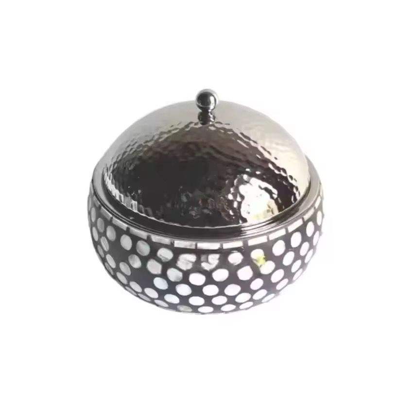 หม้อเซรามิกหรูหราพร้อมฝาปิดสแตนเลสสีทอง หม้อเสิร์ฟบุฟเฟ่ต์ทันสมัย ภาชนะสำหรับโรงแรมและร้านอาหาร