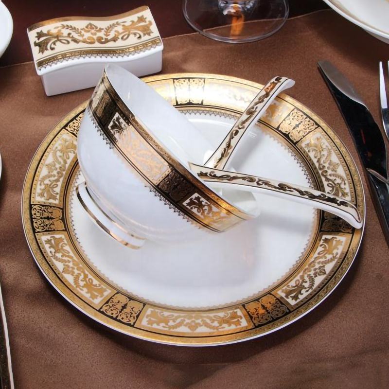 ชุดห้องรับประทานอาหารเซรามิกสุดหรูชุดเครื่องใช้สำหรับอาหารค่ำเครื่องเคลือบดินเผาพระราชวังเคลือบทองพรรคยุโรปตะวันตกขายดี52ชิ้น
