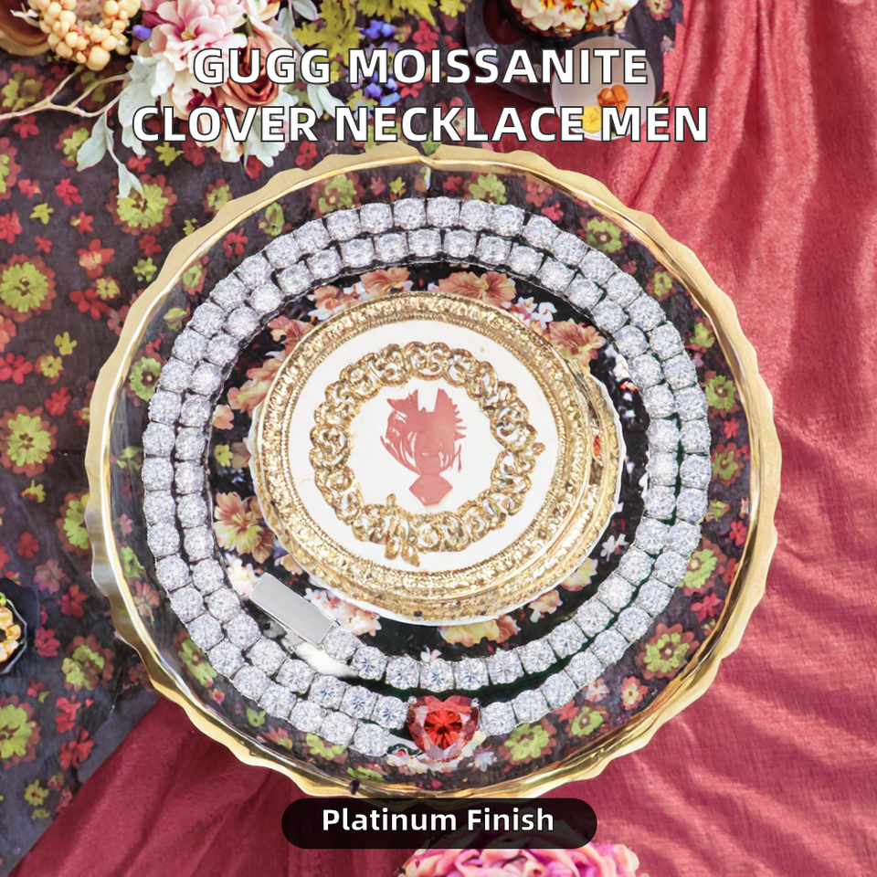 กำไลข้อมือหรูหราประดับจี้เงินแท้ 925 ชุบแพลตตินั่ม/ทองคำ พร้อมสร้อยคอรูปใบโคลเวอร์สี่แฉกประดับมอสซาไนต์