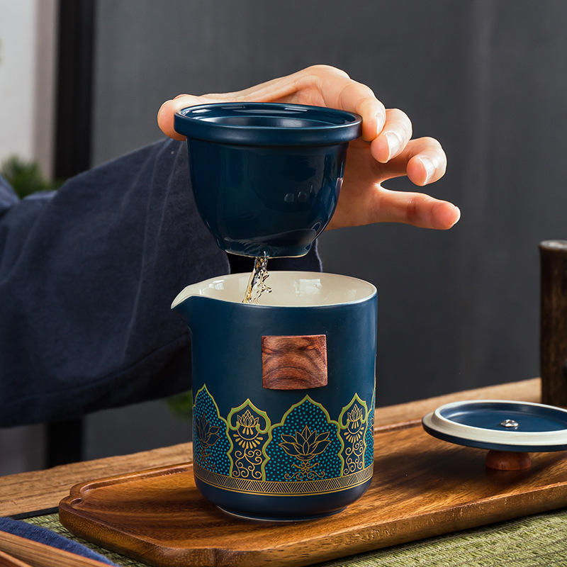 ชุดถ้วยชาจีนหรูหราแบบพกพา ชุดเครื่องดื่มพอร์ซเลน ชุดชงชาแบบกังฟูจีน พร้อมถุงของขวัญ