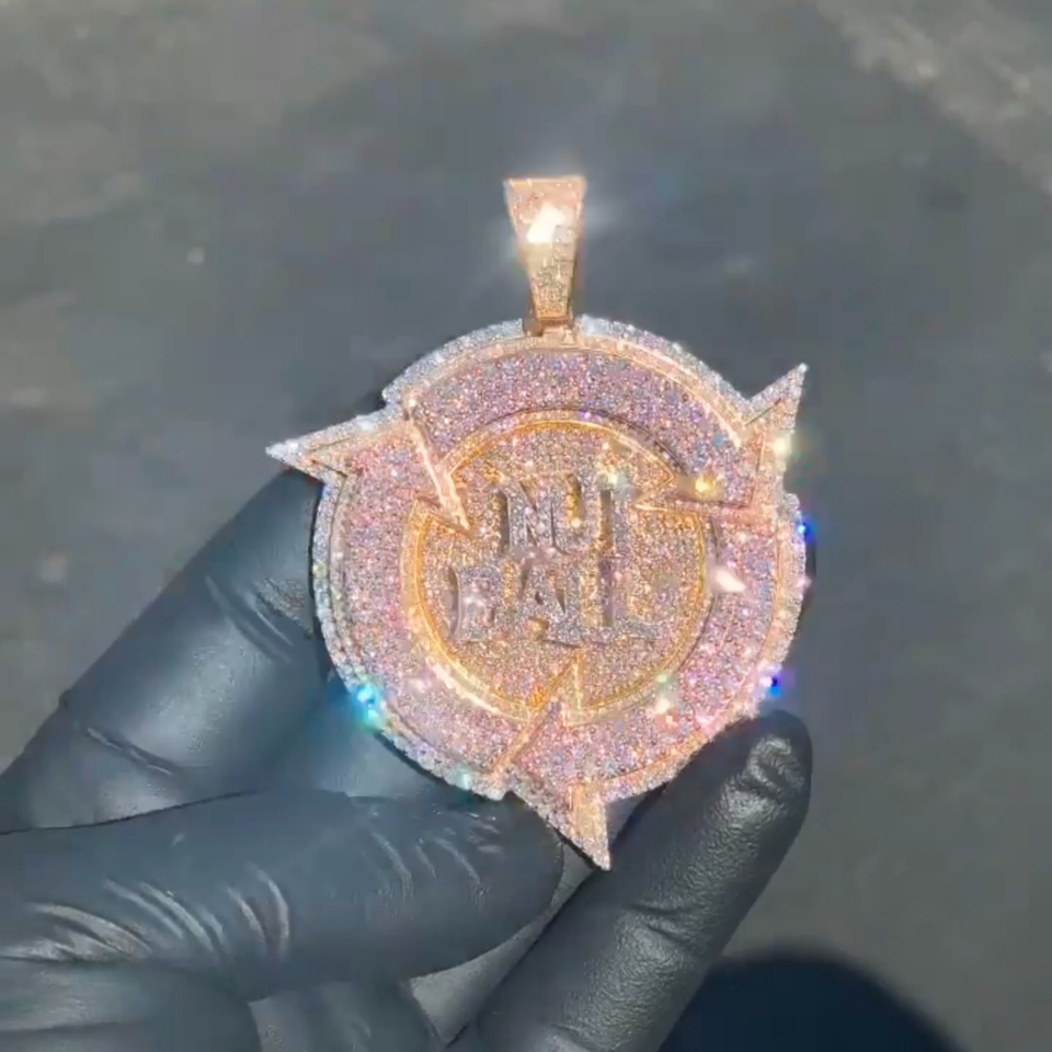 จี้เพชรโมอิสซาไนต์ทรงกลมดีไซน์ลูกศร สไตล์ฮิปฮอป หรูหรา สำหรับชาวคริสต์ ทำจากเงินแท้ชุบทอง