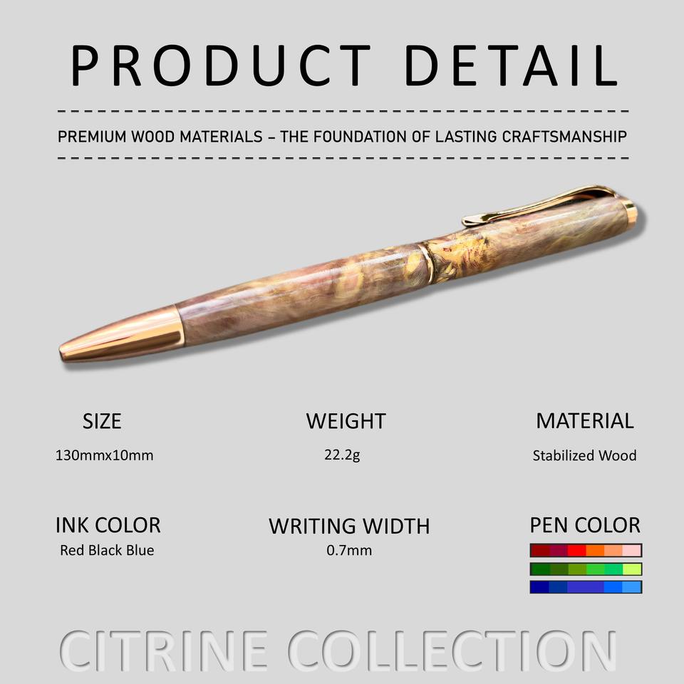 คอลเลกชันที่หรูหรา Citrine ปากกาลูกลื่นด้ามไม้, ปากกาลูกลื่นบิดคงที่ทำจากไม้ของขวัญทางธุรกิจที่มีคุณภาพสูง