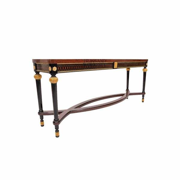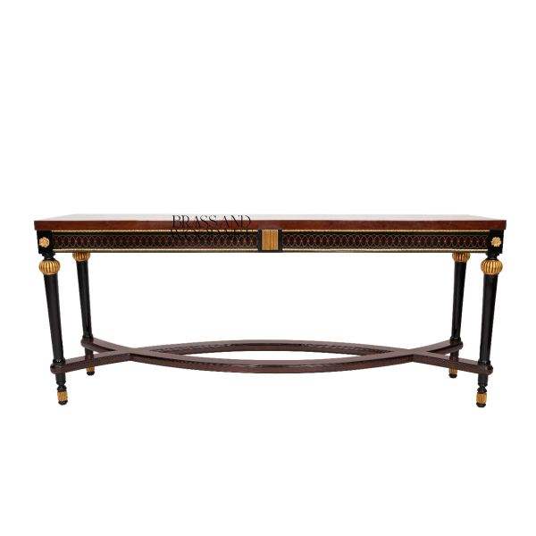 โต๊ะคอนโซลสุดหรูทรงคลาสสิก รูปทรงสี่เหลี่ยมผืนผ้า ทำจากไม้แท้ประดับด้วยสีทอง ดีไซน์สไตล์ฝรั่งเศสสุดหรู