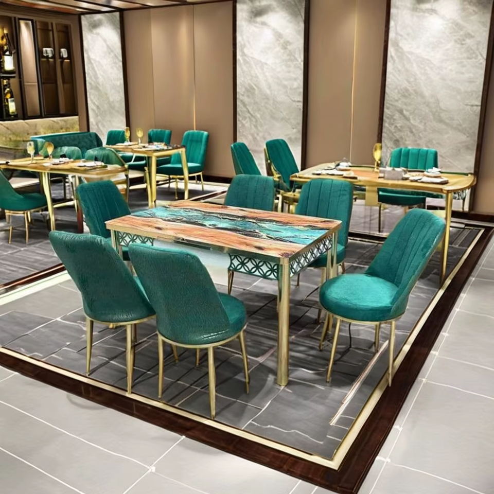 ชุดโต๊ะรับประทานอาหารสุดหรูสไตล์คลาสสิกแบบปรับเปลี่ยนได้ ทันสมัย ผลิตจากไม้และโลหะ เหมาะสำหรับบ้าน ห้องครัว โรงแรม ร้านอาหาร วิลล่า และห้องนั่งเล่น