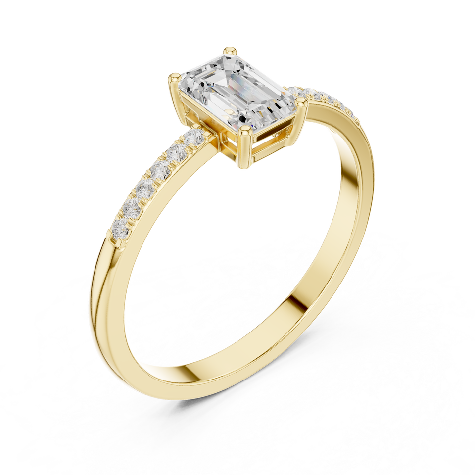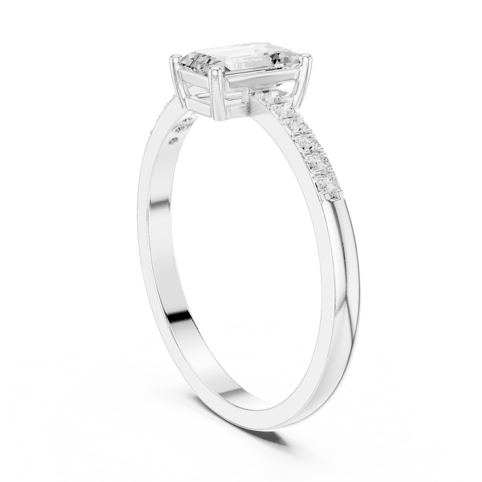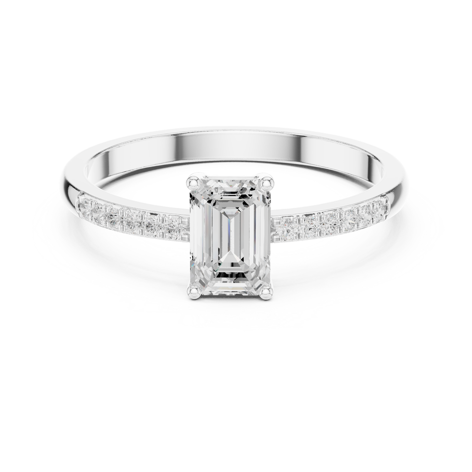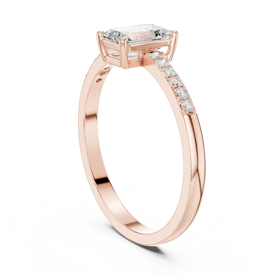 แหวนหมั้นเพชรโมอิสซาไนต์ทรงสี่เหลี่ยมมรกตสุดหรู รับรองโดย IGI ตัวเรือนโลหะผสมสีโรสโกลด์ ประดับเพชรแบบ Prong Setting สำหรับงานแต่งงาน