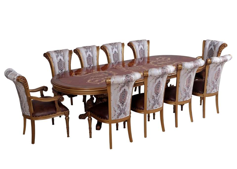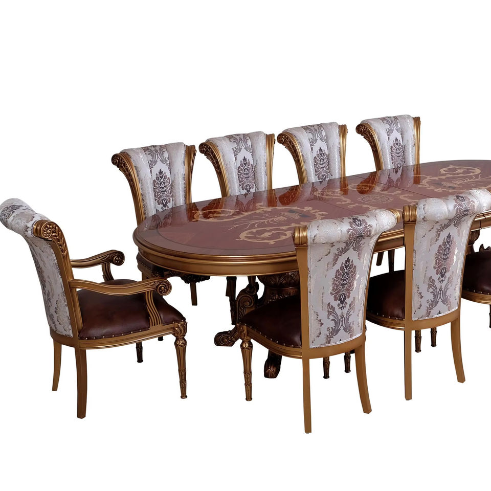 ชุดโต๊ะอาหารหรูหราสไตล์ยุโรปคลาสสิกแบบเดนมาร์ก 10 ที่นั่ง ทำจากไม้เนื้อแข็ง แกะสลักด้วยมือ สำหรับใช้ในห้องรับประทานอาหาร