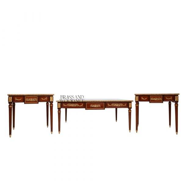 ชุดโต๊ะกาแฟไม้ฝังลายคลาสสิกสุดหรู