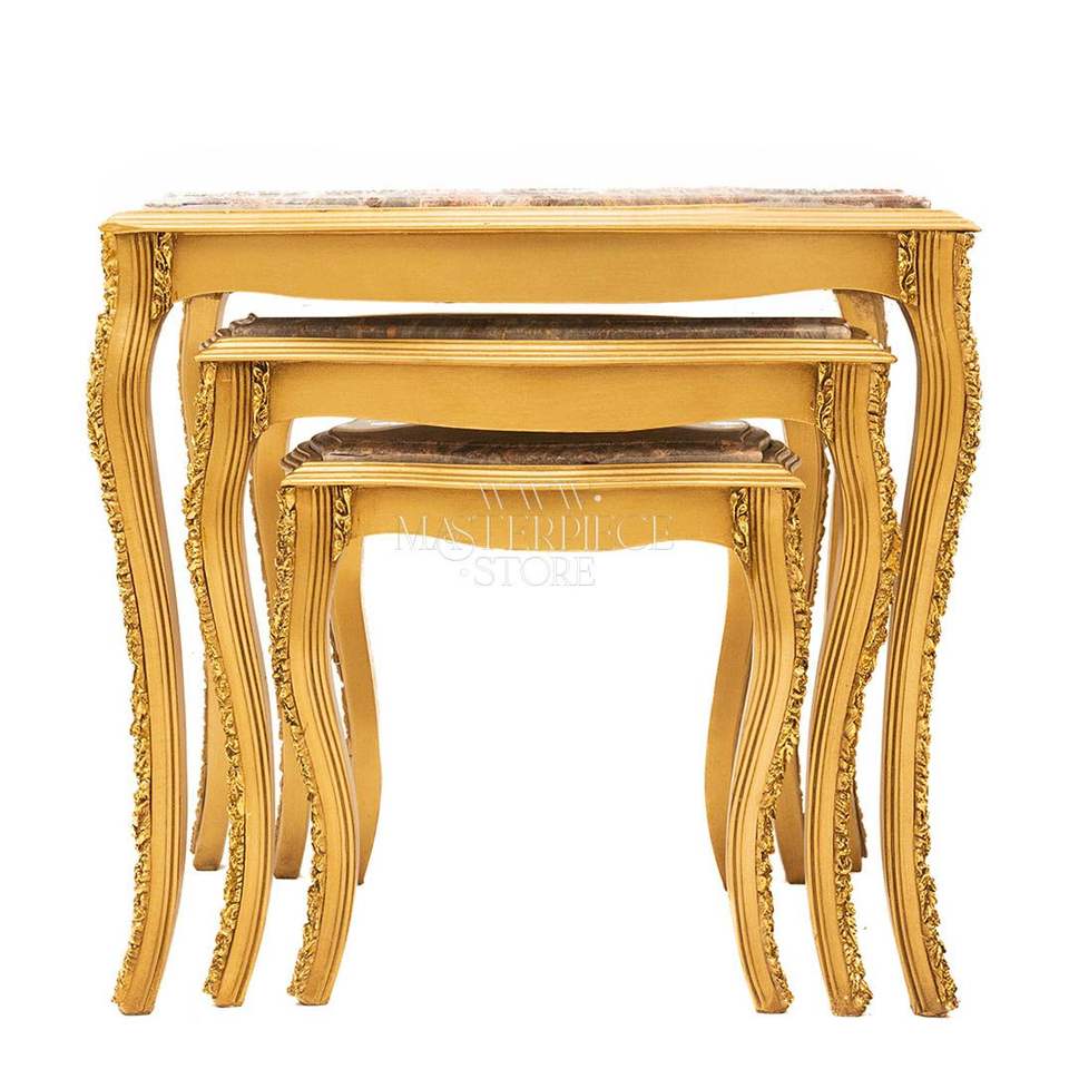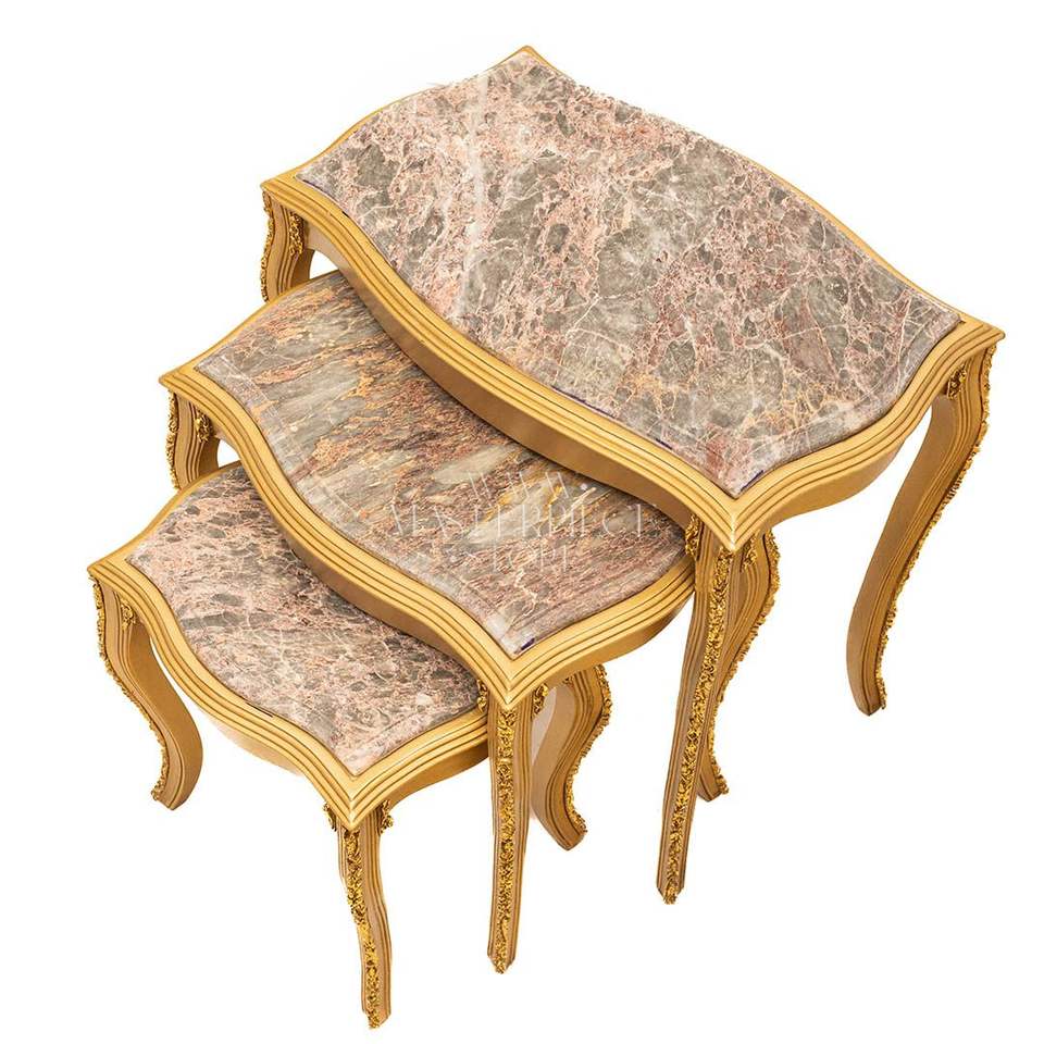 ชุดโต๊ะบริการแบบซ้อนกันลายหินอ่อนสุดหรูหรา พร้อมกรอบทองแกะสลักด้วยมือ เพื่อการตกแต่งภายในบ้านอย่างสง่างาม