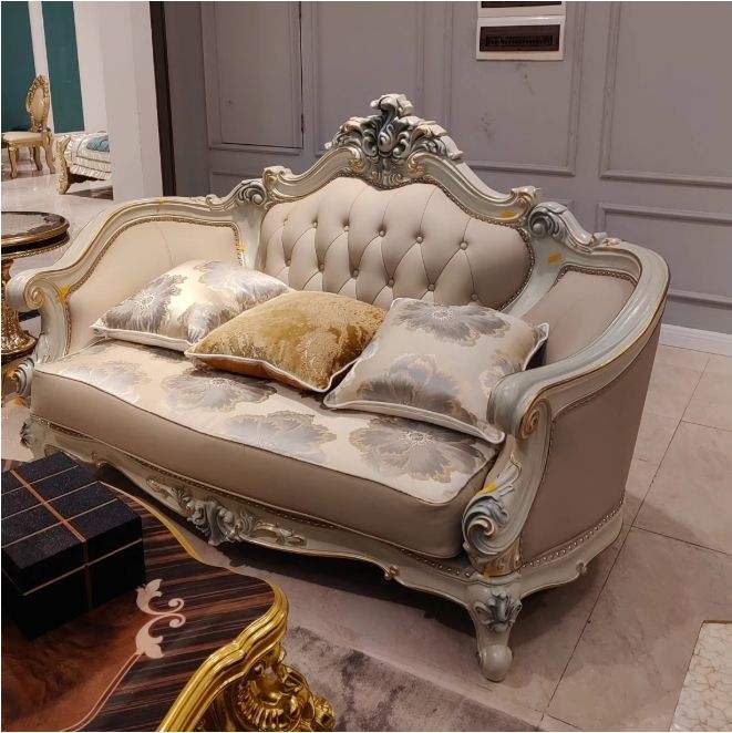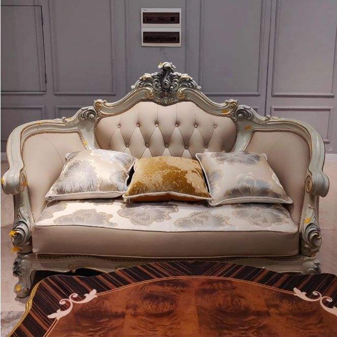 ชุดโซฟาไม้สักคลาสสิกสุดหรูหุ้มหนังแท้ เฟอร์นิเจอร์ห้องนั่งเล่นสำหรับวิลล่า เป็นมิตรกับสิ่งแวดล้อมและทนทาน คุณภาพส่งออก