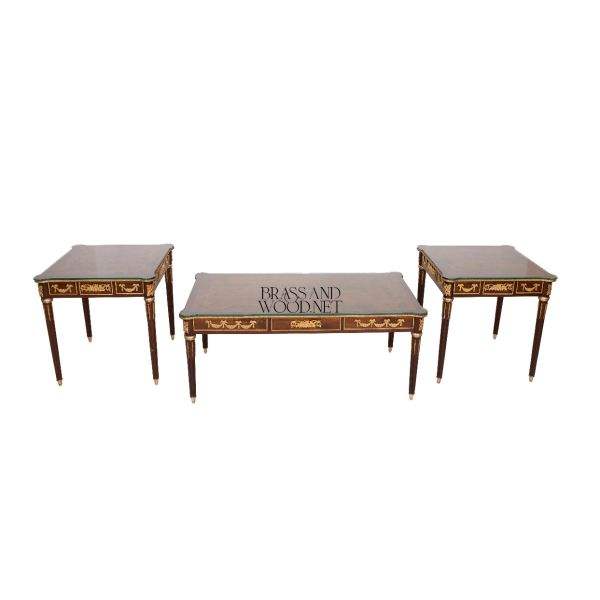 ชุดโต๊ะกาแฟไม้คลาสสิกสุดหรูพร้อมดีเทลทองเหลือง