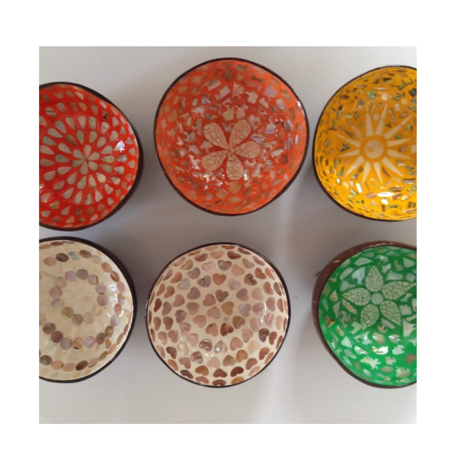ชามเปลือกมะพร้าวหรูหรา ชามมะพร้าวเปลือกมุก ชามมะพร้าวเคลือบทอง ชามมะพร้าวทำมือ ผู้ผลิตจากเวียดนาม