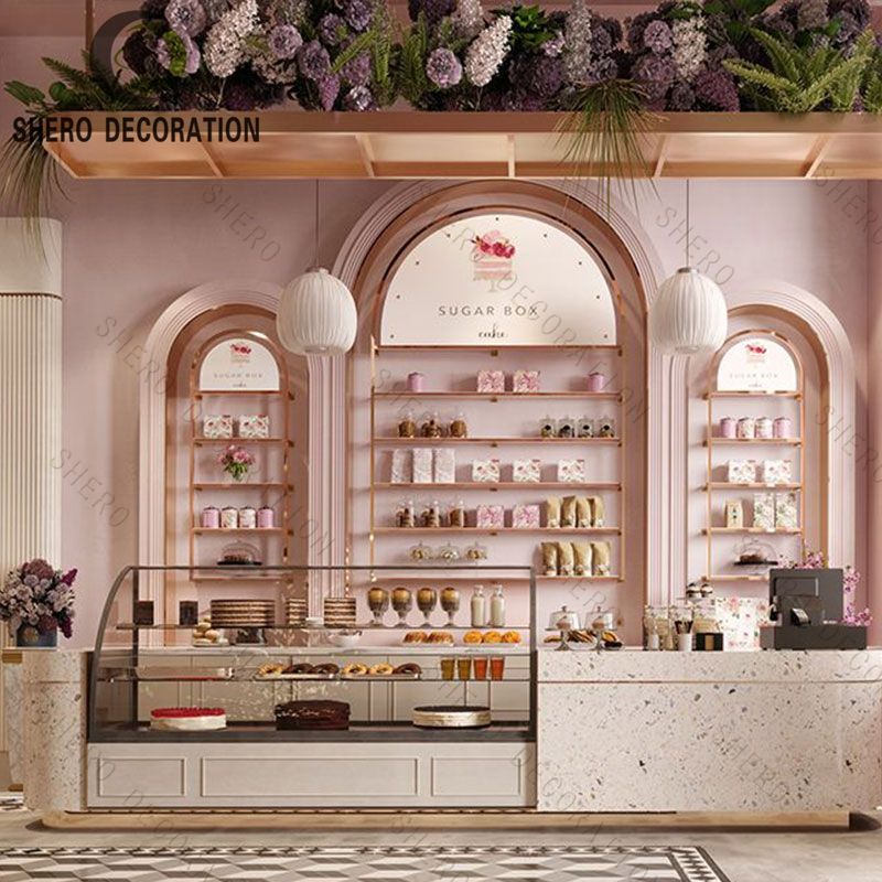Luxury Coffee Shop Bar Counter Design Functional Restaurant Display Showcase with Great Decoration Coffee Shop Cabinet Display