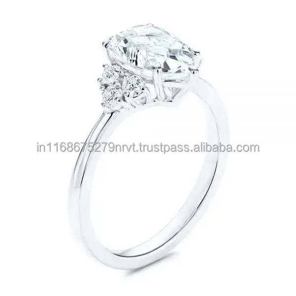 ของสะสมหรูหราแหวนเงินรูปลูกแพร์เพชรโมอิสซาไนต์แบบดั้งเดิมเครื่องประดับดีแหวนเซอร์ไพรส์สำหรับงานแต่งงาน