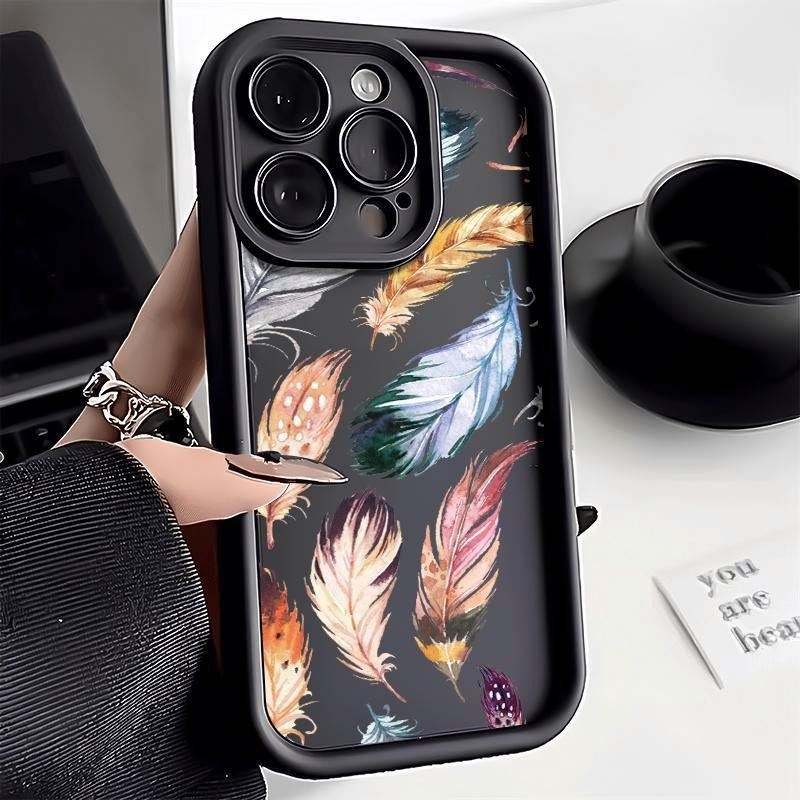 เคสโทรศัพท์ขนนกสีสันสดใสสุดหรู สำหรับ iPhone 16 15 14 13 12 11 Pro Max XS XR X 17 8 7 Plus SE 2022 ป้องกันการกระแทก