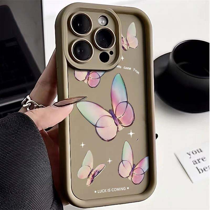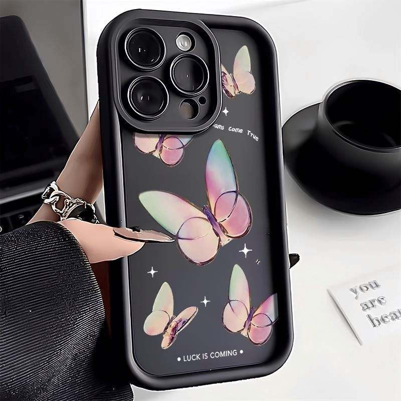 เคสโทรศัพท์ลายผีเสื้อสีสันสดใสสุดหรู สำหรับ iPhone 16 15 14 13 12 11 Pro Max XS XR X 17 8 7 Plus SE 2022 ป้องกันการกระแทก