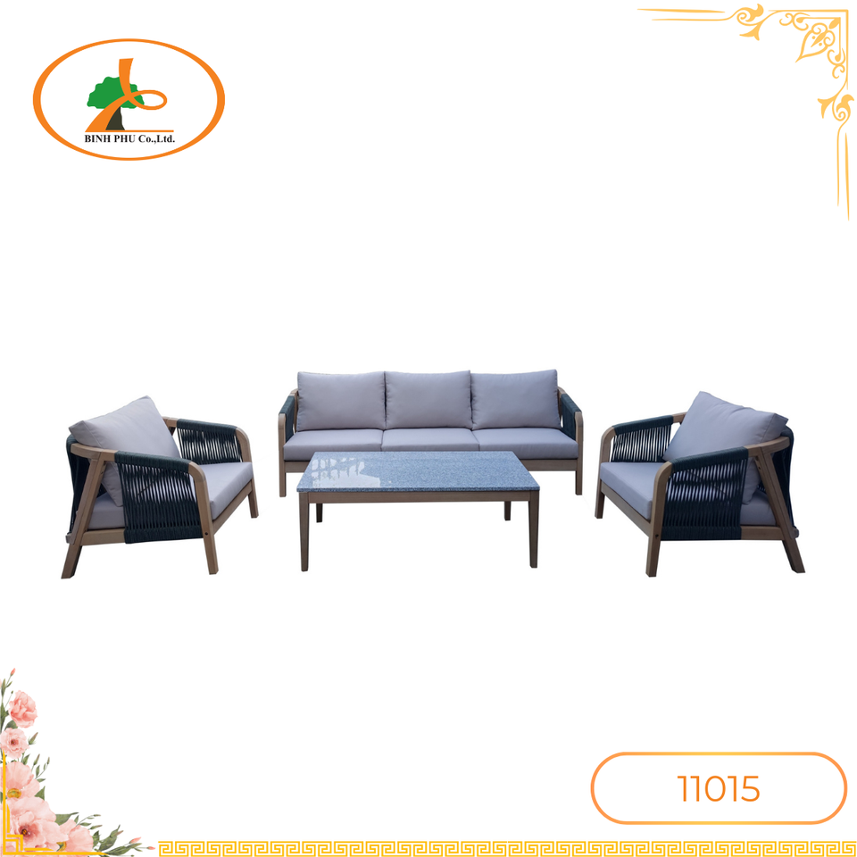 ชุดโซฟาไม้แข็งกลางแจ้งเชิงพาณิชย์ที่ทันสมัยหรูหราออกแบบด้วยเชือกสำหรับลานโรงแรมวิลล่าผู้ผลิตจากเวียดนาม